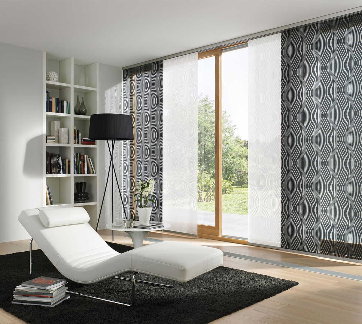 Wer die Symbiose aus puristischem Design, geraden Linien und funktionaler Beschattung für breite Fronten sucht, ist beim Flächenvorhang genau richtig. Durch die mehrläufigen Schienen können sowohl unterschiedliche Abdunkelungsstufen als auch verschiedenste Designs perfekt kombiniert und die Stoffe bzw. Behänge auch jederzeit ausgetauscht werden. In der Regel werden Flächenvorhangsysteme mittels Schleuderschiene oder Schnurzug bedient.